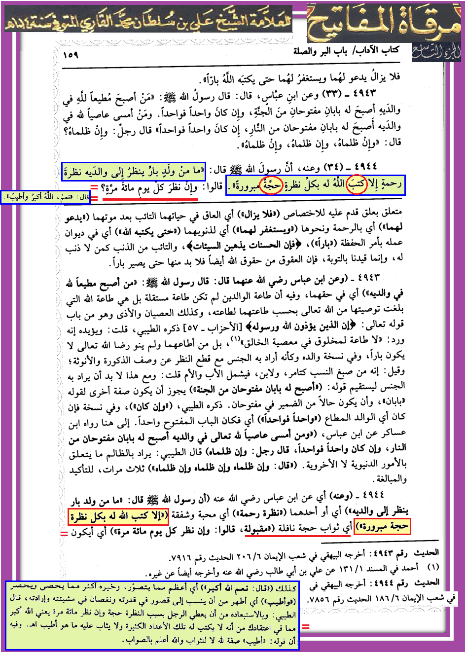 Посланник Аллаха (С) сказал: «Если праведный сын взглянет на отца и мать с милостью — Аллах запишет ему за каждый взгляд принятый хадж«.